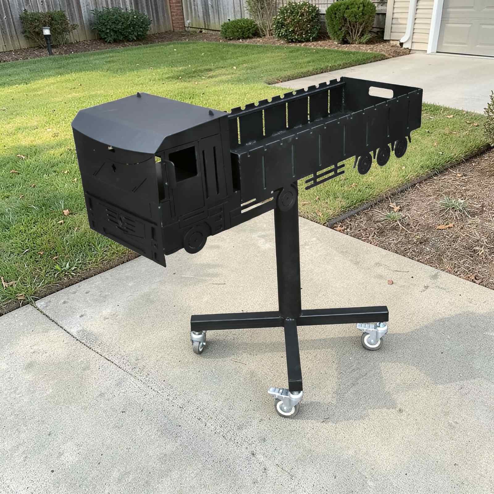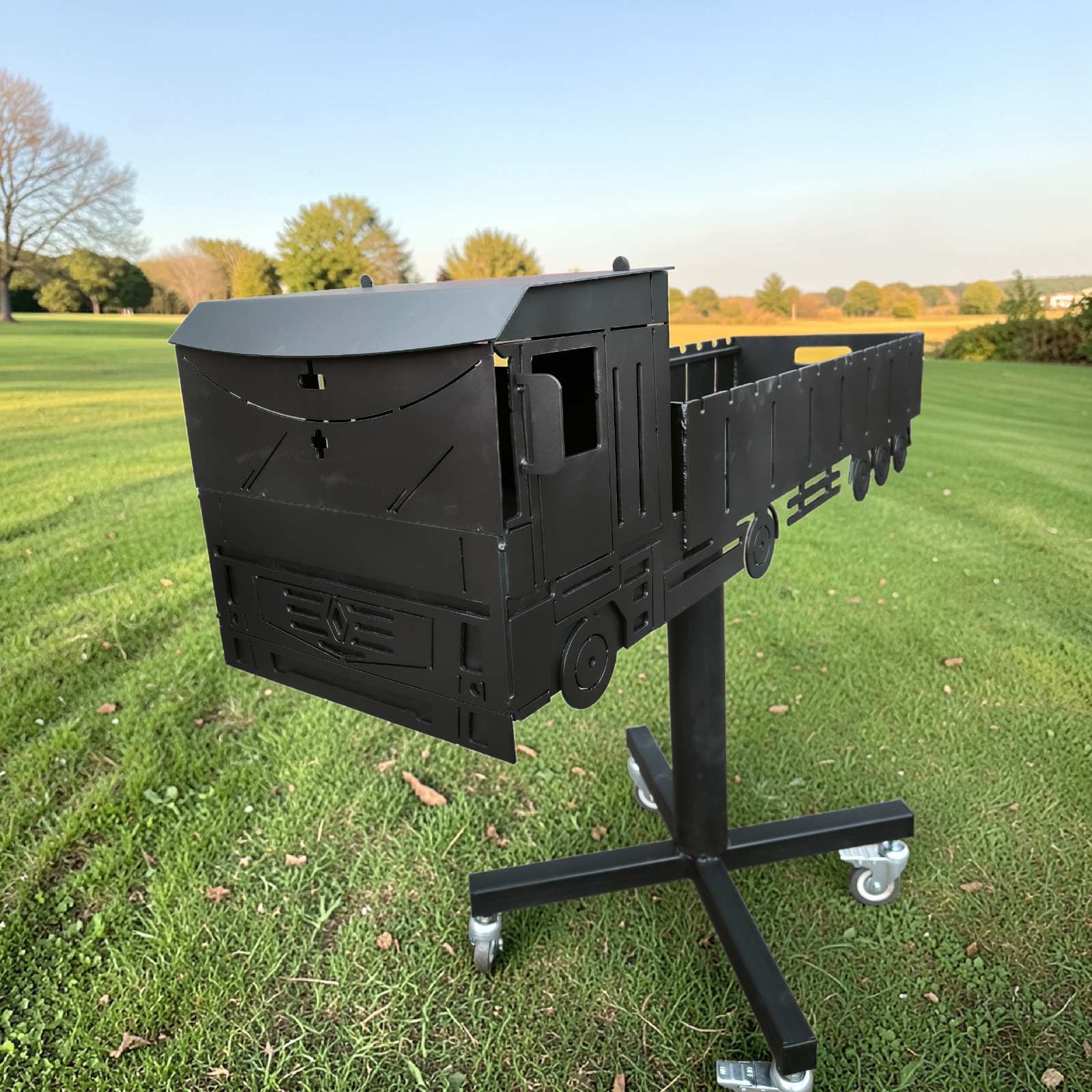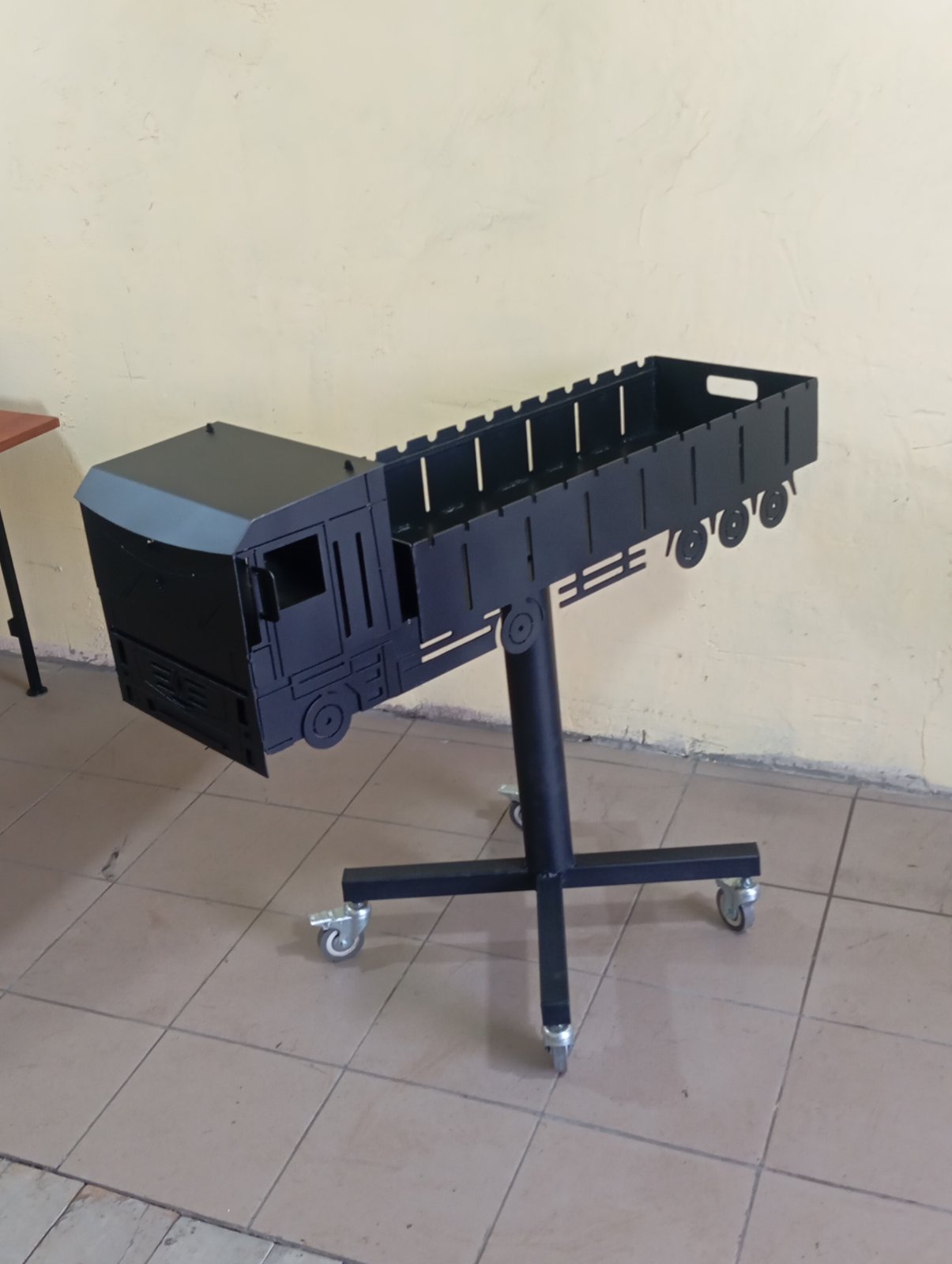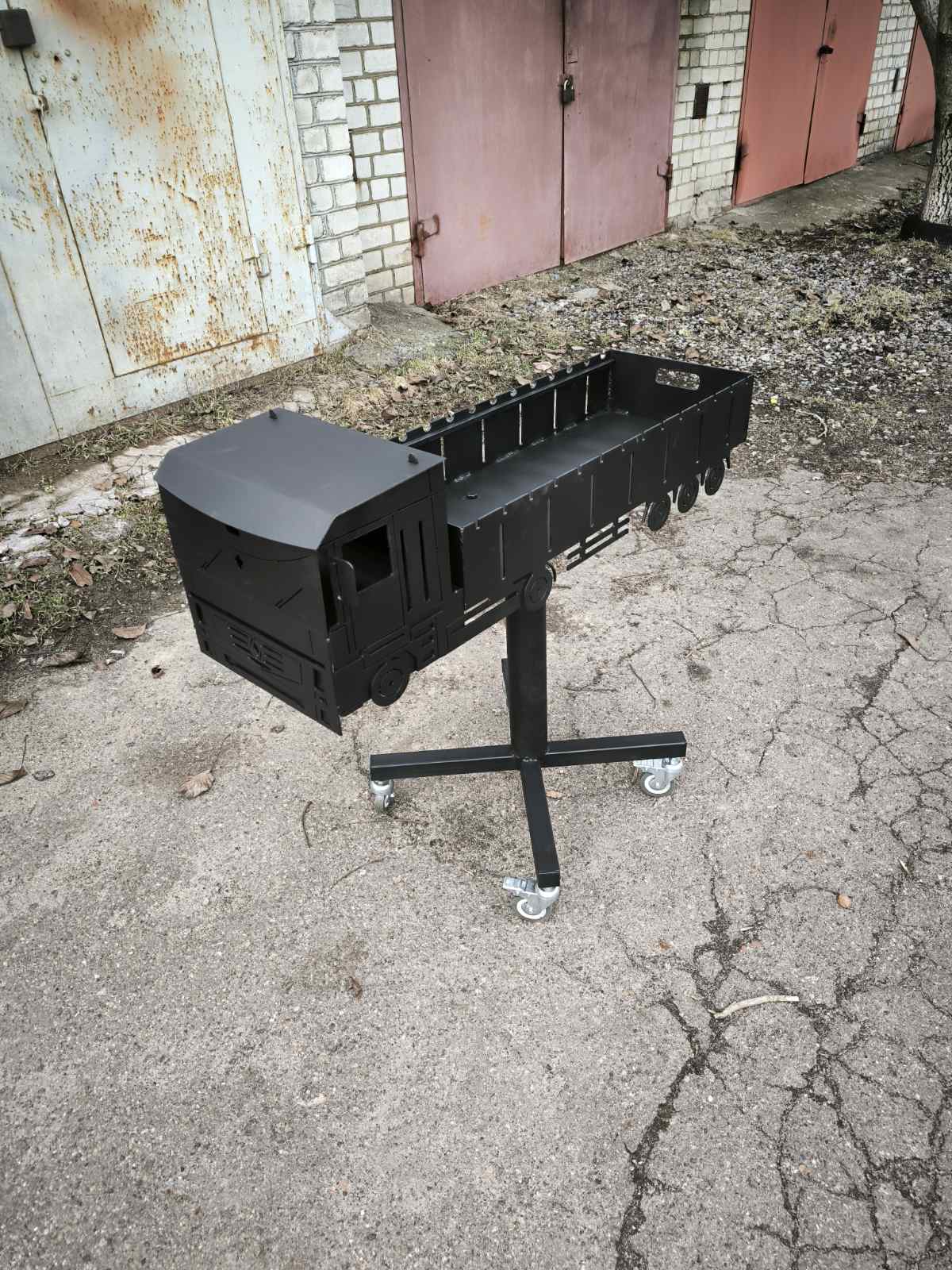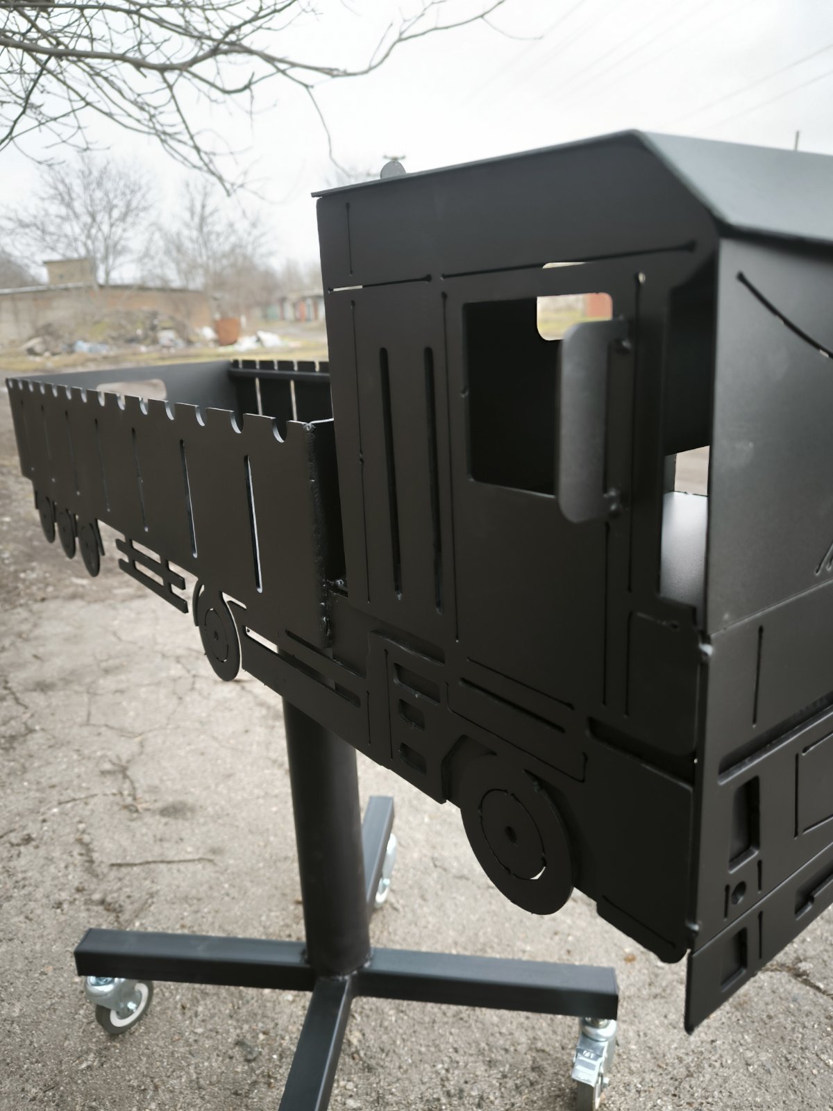 Мангал виконаний у вигляді великого поршня з шатуном.
